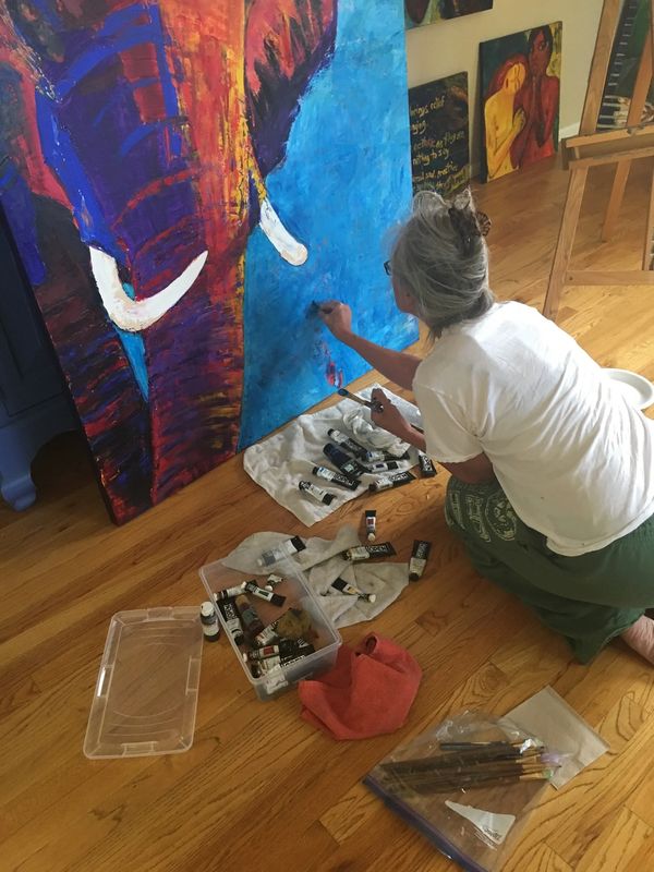 Pamela Compton paints what she feels in addition to what she sees, resulting in bold artwork that is filled with passion, often flowing off the canvas. Through a whole body approach, Compton creates a paradox between expressionism and realism. She distorts her surrounding world for visual pleasure, striving to represent the subject matter truthfully. Inspired by her extensive travels from Italy to Indonesia and across the USA, Compton's vivid paintings convey distinctive traditions, history, and beauty of life, while eliciting genuine emotional reflection. Influenced by years of working alongside people with developmental disabilities and observing the joyful uninhibited way in which they experience life, Pamela seeks to express herself with a similar freedom and enthusiasm. Compton’s work is primarily described as Expressionist. The influence of the Fauves and the Expressionists can be seen in her vibrant use of color, painting flat patterns in the most extravagantly brilliant colors. Colors play a central role in her work but are not necessarily the true colors of the image. They reflect the artist's sensitivities and state of mind. The surging vibrancy and impassioned style as well as the freedom of execution are characteristic of her work. Similarly to Post-Impressionism and Modern artists, she deliberately flouts conventional rules of drawing and perspective. Massive shapes easily fill the canvas which appears almost too small to contain the image, suggesting a sense of expansion as if the colors were straining at the edges. She paints straight onto the canvas without the use of preparatory sketch. The artist's choice medium is acrylic on canvas, and she uses brushes and razor blades, fingers, palette knives, anything to get closer to the canvas and create more texture. Pamela Compton’s paintings can be found in businesses and private homes worldwide.